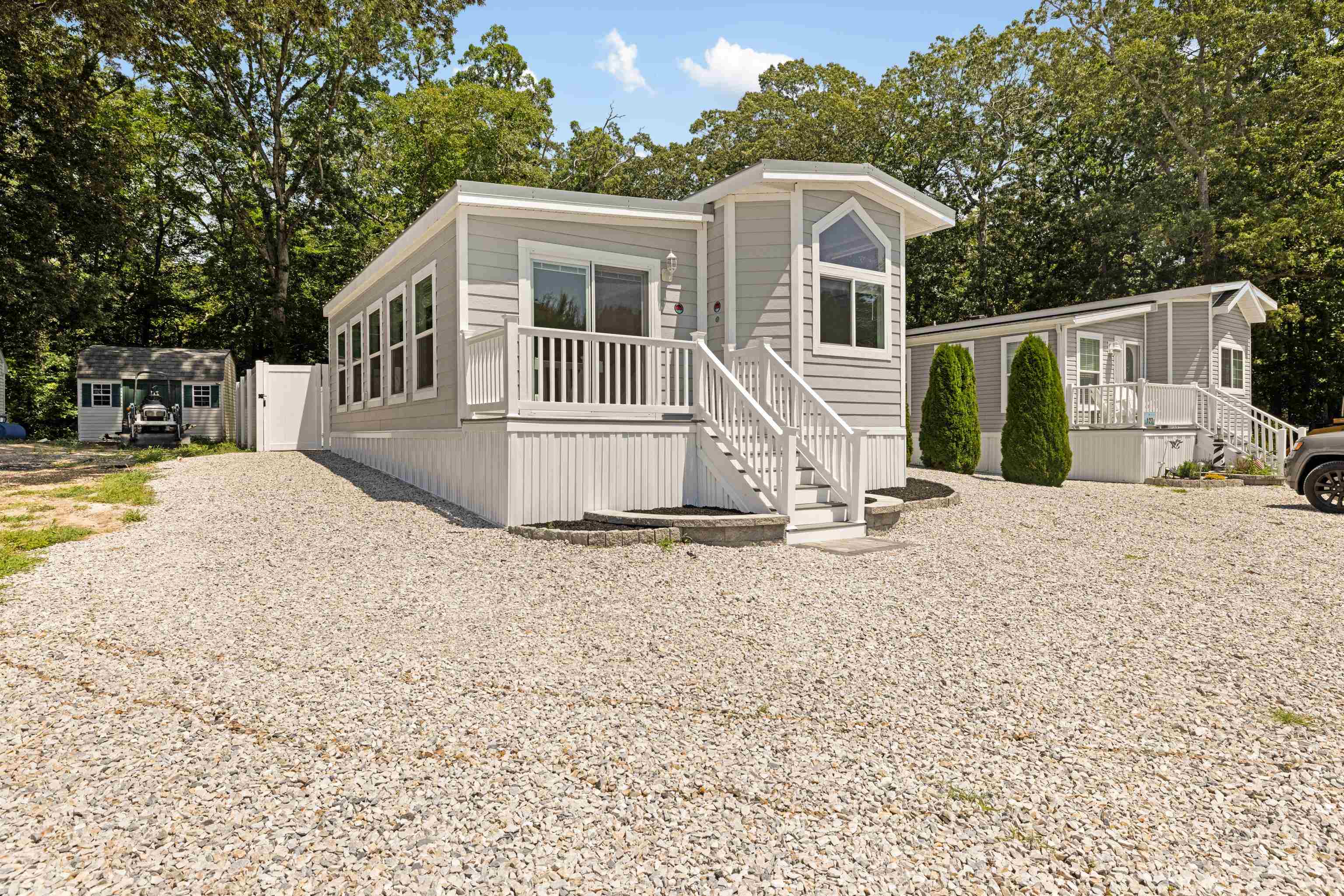 Brand new 2024 unit awaiting its new owners! Don't miss the opportunity to purchase this NEW two bedroom- one-and-a-half-bathroom unit that offers a cozy yet comfortable living space. The open layout between the living room, dining room, and kitchen is perfect for entertaining guests or simply relaxing with family. The fully fenced paved yard adds privacy and convenience, providing a great outdoor space for gatherings or enjoying the sunshine. The outdoor shower is a wonderful feature for rinsing off after a day at the beach, keeping the interior of the house clean. Additionally, having a storage shed is ideal for keeping beach toys, bikes, or any other outdoor equipment organized and easily accessible. This home seems like an excellent opportunity for anyone seeking a close to the beach retreat in the Cape Shore Resorts. Rent includes water/sewer, trash removal, property taxes, coin operated laundry facilities, and common area grounds maintenance including professional pool cleaning. Community amenities include three swimming pools, bocce ball, a basketball court, playground, picnic area, a stocked fishing lake, and a charming gazebo. Occupancy is somewhat restricted from November to March, one of the only communities with weekend access and the option for extended stays during major holidays. All applicants are subject to a credit check and background check and are required to sign an annual lease with a monthly fee of $640.00.