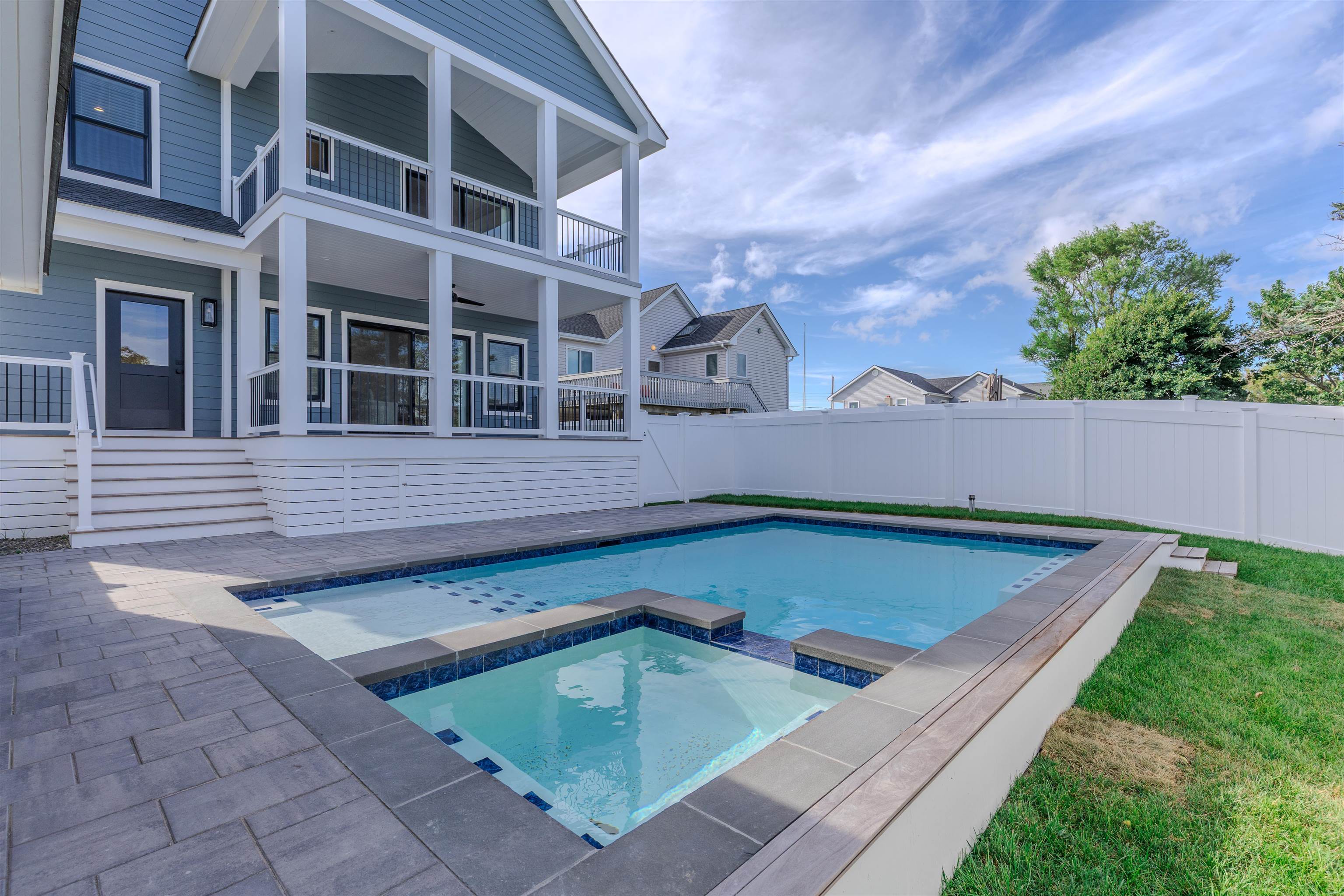 Welcome to 711 Beach Drive — A Coastal Masterpiece on the Bayfront Nestled along Lower Township’s prestigious “Gold Coast,” 711 Beach Drive is a newly constructed bayfront sanctuary that effortlessly blends modern elegance with timeless coastal charm. Boasting sweeping, unobstructed views across the Delaware Bay and spectacular sunsets that stretch to the horizon, this bespoke residence redefines waterfront living in South Jersey. Meticulously crafted by Vallese Builders with refined interiors curated by Studio Blu Interiors, this home spans over 2,850 square feet of elevated living space. With five bedrooms — including four private ensuites — and five full bathrooms plus a powder room, the layout is perfectly tailored for both intimate family living and effortless entertaining. The exterior architecture stuns with a harmonious blend of board and batten and Hardie Plank siding, accented by sleek black Andersen windows and a standing seam metal roof that enhances the home's clean, coastal profile. Step inside to wide-plank white oak engineered flooring that flows throughout. The first floor welcomes you with a spacious family room, complete with a custom wet bar, ideal for casual gatherings. Three of the ensuite bedrooms are located on this level, along with a full laundry room and a powder room that conveniently services both the interior and the outdoor pool area. Oversized sliders lead to a covered rear deck overlooking the expansive backyard — a true outdoor haven featuring a 15’ x 25’ in-ground gunite pool with a built-in spa, paver patio, and a cabana lounge area, all set against lush professional landscaping. Ascend via the three-stop elevator to the second floor, where the heart of the home awaits. A dramatic vaulted ceiling with shiplap detail crowns the sun-drenched great room, anchored by a gas fireplace and surrounded by panoramic bay views. The gourmet kitchen is a culinary dream, appointed with quartz countertops, top-tier appliances, and custom cabinetry, while the adjacent dining area seamlessly flows to an expansive upper deck — perfect for al fresco dining and sunset cocktails. The primary suite is a true retreat, featuring a private deck, a spa-like marble bath, and generous closet space. A fifth bedroom on this level offers flexibility as a home office, media room, or guest space. Additional luxuries include: • Two-zone heating and cooling • Professionally designed landscaping with irrigation • Ample off-street parking • Coastal-resilient finishes for longevity and style Whether you're savoring quiet mornings by the bay, hosting vibrant summer soirées, or simply soaking up the beachside tranquility, 711 Beach Drive is more than just a home — it's a lifestyle. This rare offering presents an extraordinary opportunity to own a piece of paradise in one of Cape May County’s most coveted waterfront enclaves.