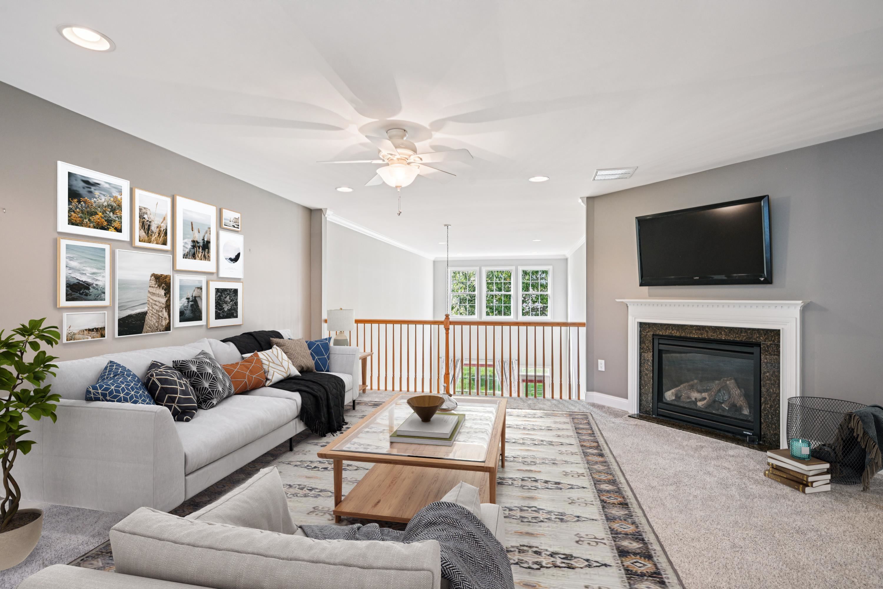 Welcome to 3 Whimbrel Way in the Four Seasons, a 55+ community. Step inside to a bright foyer with high ceilings, a coat closet, and a conveniently located powder room. The open kitchen, dining, and living areas feature soaring 20 ft ceilings with an abundance of natural light from the many windows. The kitchen is equipped with stainless steel appliances including a gas range, granite countertops, a pantry, and bar-stool seating. The main living space offers hardwood floors, recessed lighting, and plenty of room for a large sectional and a six-piece dining set. Sliding glass doors lead to the back hardscaped patio, perfect for outdoor dining and relaxation. The first-floor primary suite accommodates a king-sized bed and includes two closets, one a spacious walk-in, as well as an ensuite bath with dual vanity, jacuzzi tub, and glass-door shower. A laundry room with access to the two-car garage completes the main level. Upstairs, a spacious loft-style secondary living space with a gas fireplace overlooks the main floor. Off the loft, you’ll find a flexible room that can serve as an office or extra storage, along with the utility room. Two additional bedrooms, each with double closets, comfortably fit queen-sized beds and share a neutral full bath with single vanity, tub shower, and nearby linen closet. Residents of Four Seasons enjoy access to a community pool and clubhouse with lounging areas, a gas grill, covered patio, and outside shower. The location offers close proximity to top attractions including the Cape May County Zoo, private and public golf clubs, Stone Harbor and Avalon Bay Park Marinas, Yacht Club of Stone Harbor, and the Wetlands Institute. With quick access to Route 9 and the Parkway, plus under a 10 minute drive to the beaches, shopping, and dining of Stone Harbor and Avalon, this home combines comfort, convenience, and coastal living!