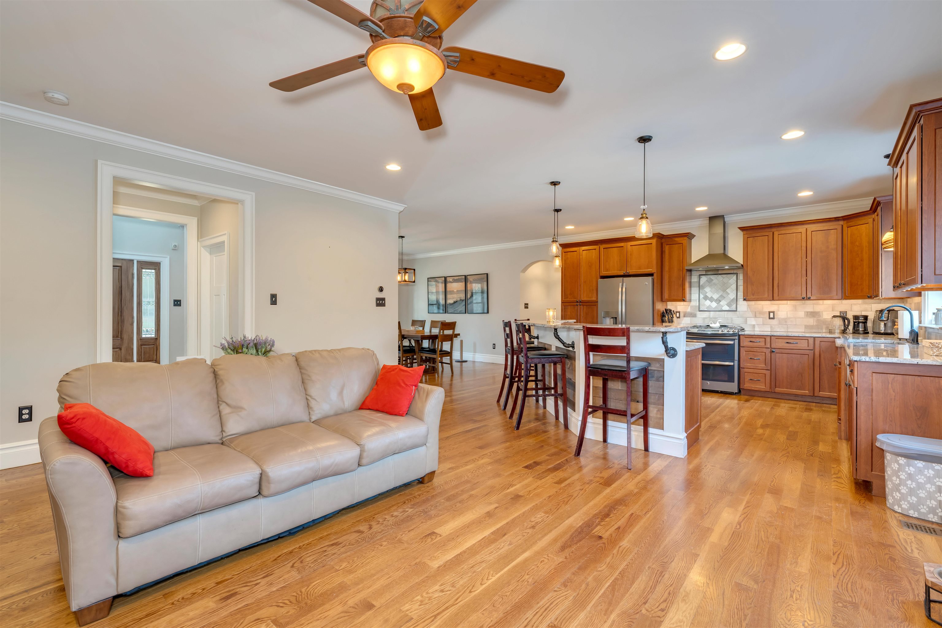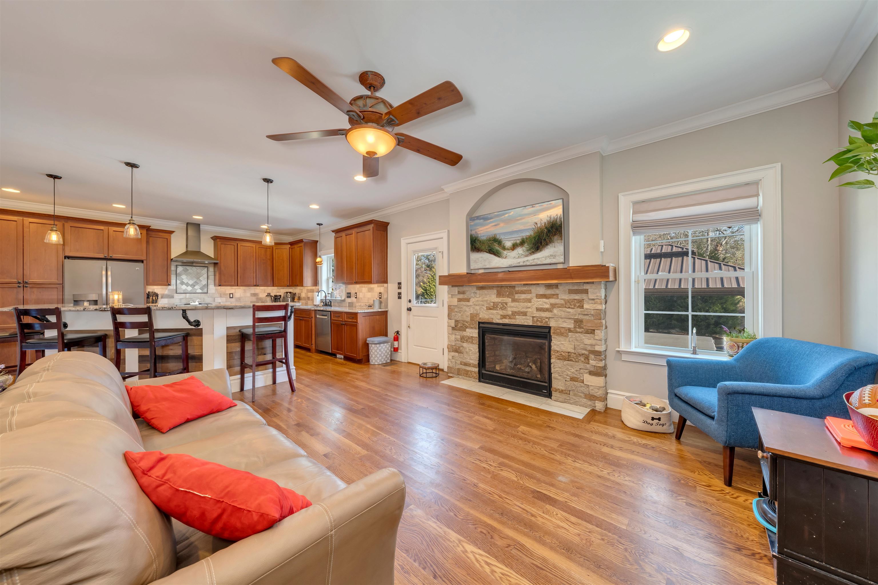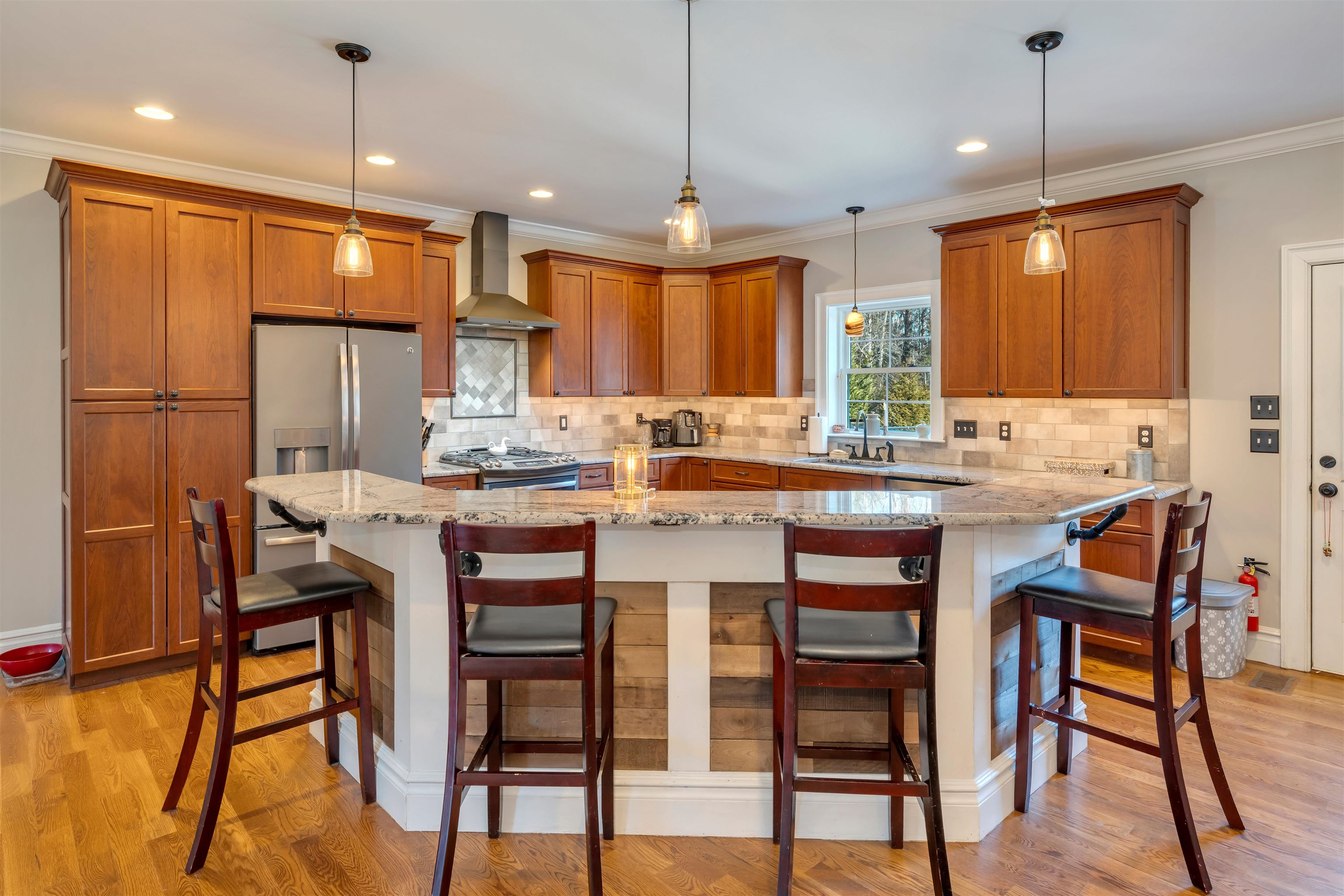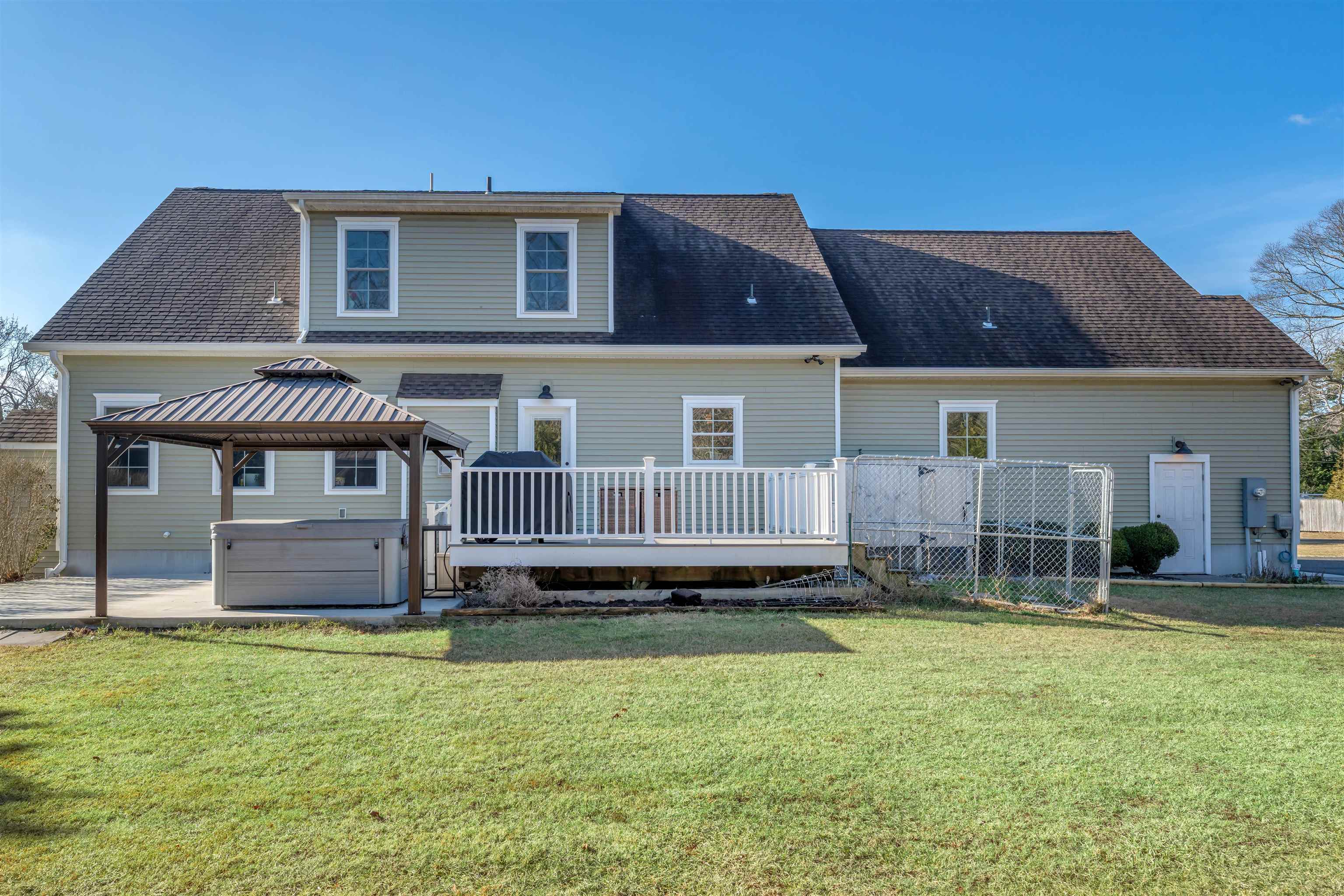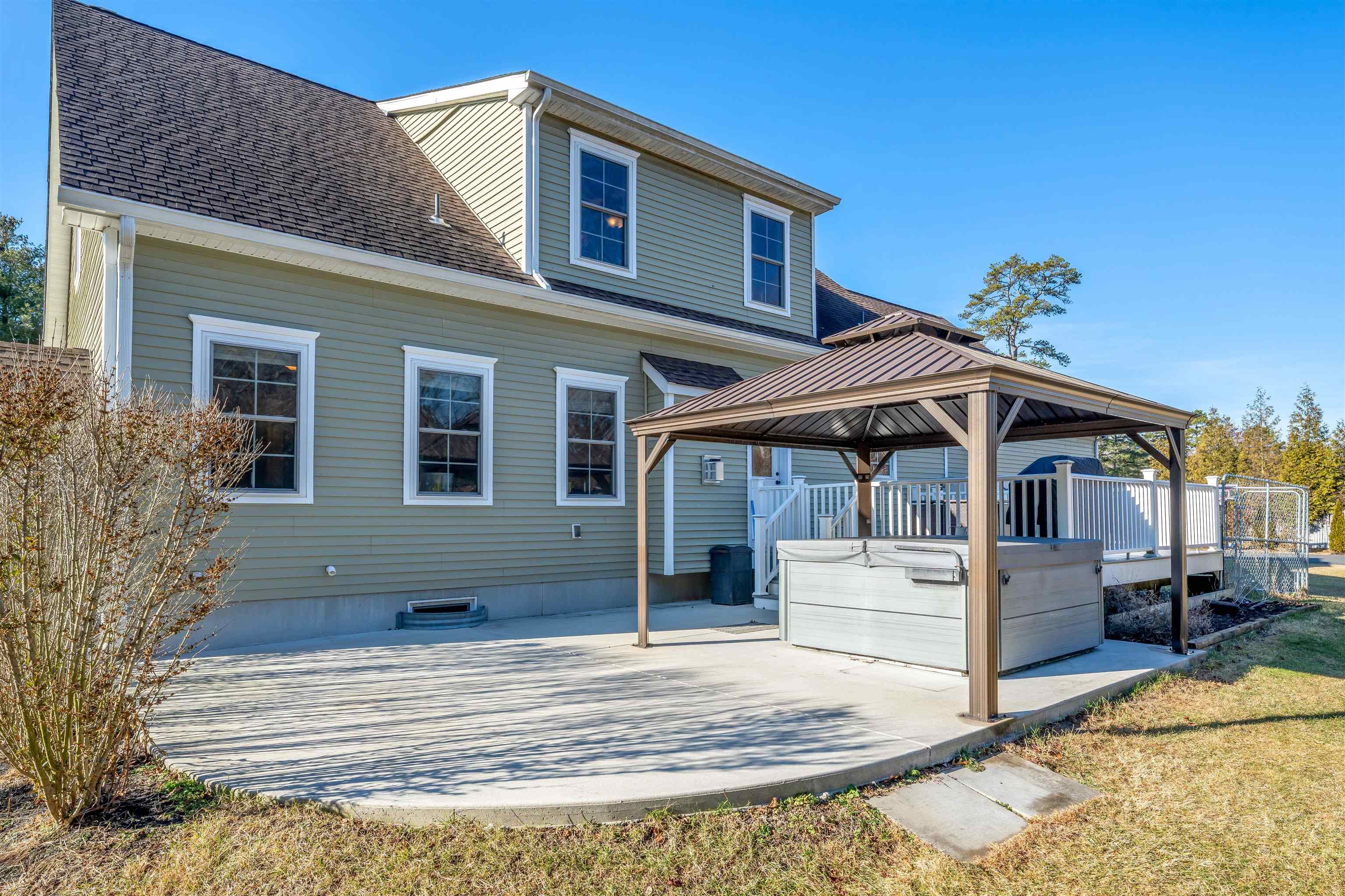 This stunning 2016 Custom built Cape Cod colonial-style residence offers 4 spacious bedrooms, 2.5 baths, and modern finishes throughout, perfectly blending comfort, style, and functionality. Hardwood flooring flows throughout the home while a cozy gas fireplace creates a warm focal point in the living room. Enjoy the convenience of a central vacuum system, elegant candlelight window package, custom built-in bench and coatrack, generous walk-in pantry, and a dedicated laundry room and tons storage areas. The open-concept gourmet kitchen flows seamlessly into living spaces, ideal for entertaining. Downstairs the luxurious owner's suite features a large custom master bathroom with double vanity and beautiful tiled walk-in shower. Additional highlights include an unfinished bonus room above the 1.5-car garage plus a finished (except ceiling) 1100 sq ft Superior Walls basement complete with dry bar, mini-split AC, and an extra bonus room perfect for an office, gym, or rec space. Step outside to your private backyard oasis featuring a rear deck ideal for entertaining, a welcoming front porch, outdoor fire pit, hot tub under a charming gazebo, outside shower, a 14x16 shed for extra storage, and plenty of parking. This move-in-ready home combines modern construction with thoughtful upgrades and endless potential—don't miss your chance to own this exceptional property!